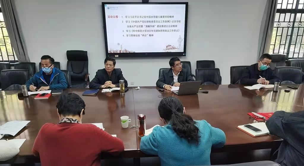 张勇书记带领大家认真学习了《华中师范大学2022年党建和思想政治工作要点》以及学校全面从严治党暨“清廉华师”建设推进会会议精神。他从五个方面、22条要点为支部全体党员介绍了我校2022年党建和思想政治要点的具体工作要求,并对我校去年推进全面从严治党工作取得的重要成效进行了传达学习。通过学习,全体党员纷纷表示要提高政治站位,立足自身职能职责,切实增强建设“清廉华师”的使命感、紧迫感和责任感,努力为建设党风清明、校风清净、教风清正、学风清新的清廉校园贡献自己的力量。